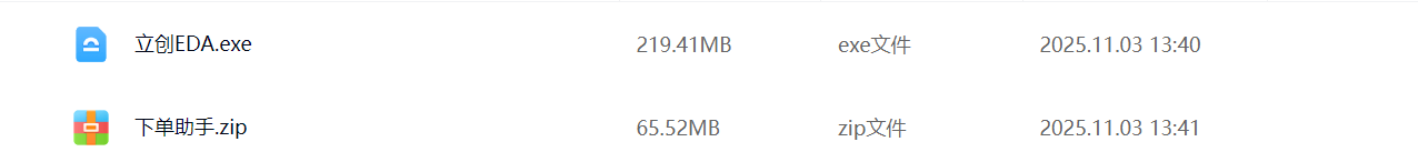 在网盘链接中下载,以下两个文件,其中第一个是制板文件,如果只有来打板的需求下载第一个就行第二个不用下载,如果有自定义的需要求则也要下载第二个文件导入到立创EDA中(两种需求的下单详情看步骤6)。
