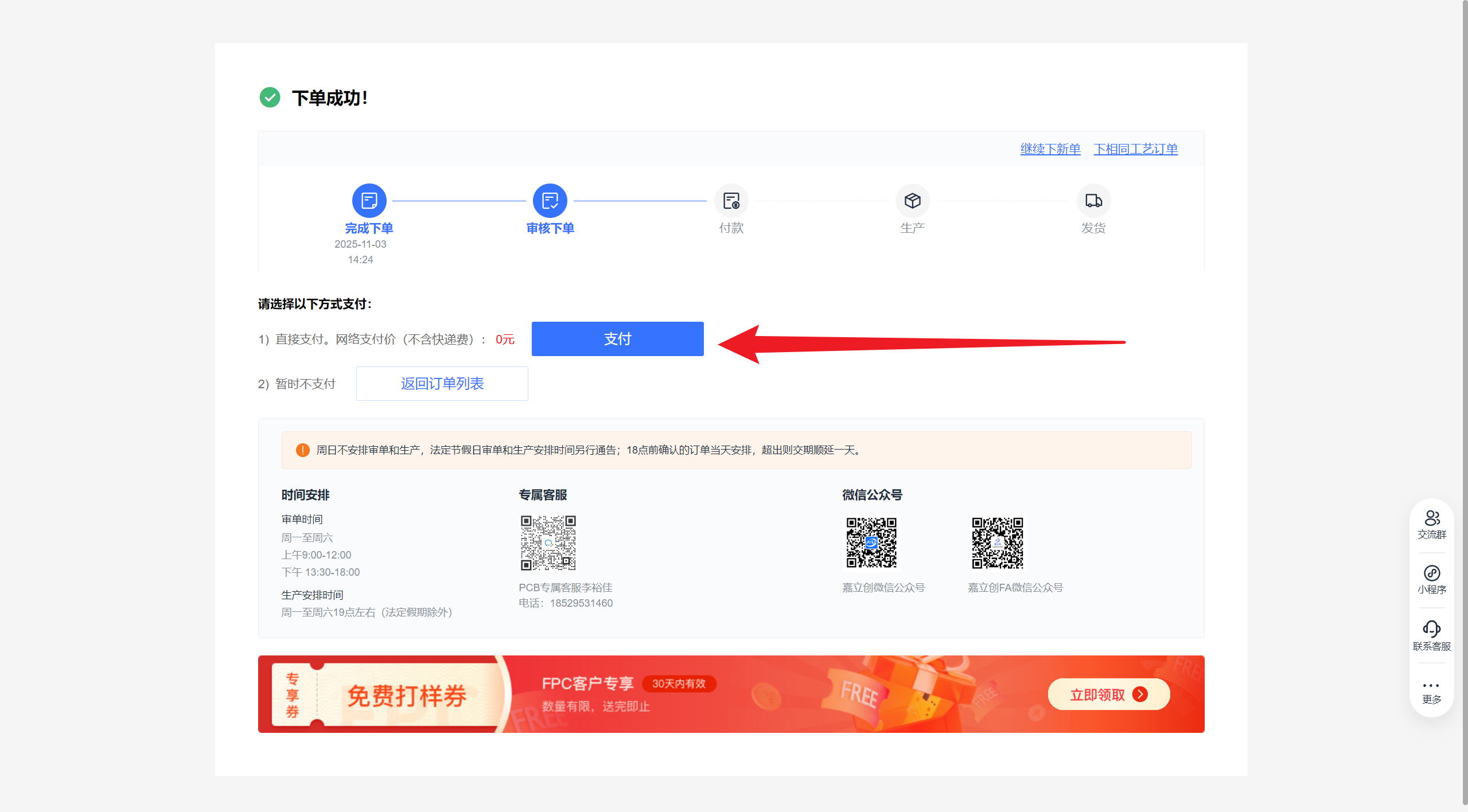 问:嘉立创的免费打板有哪些限制?